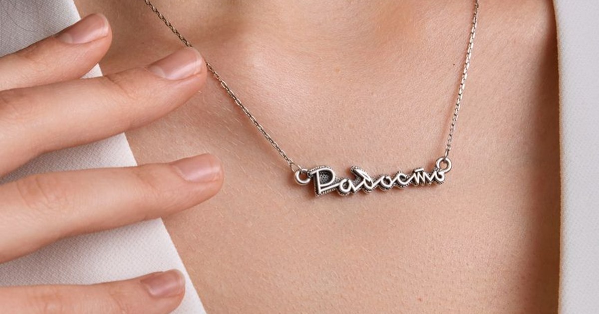 Коллекция включает кольца и подвески, созданные в виде надписи «Радость». Причем одну из подвесок можно также носить как брошь, обвес или серьгу. Стоимость украшений ― от 2,6 тыс. до 4,2 тыс. руб. Кроме того, в каталог вошли шарф, шапка, шопер и футболки ― они также дополнены словом «Радость».