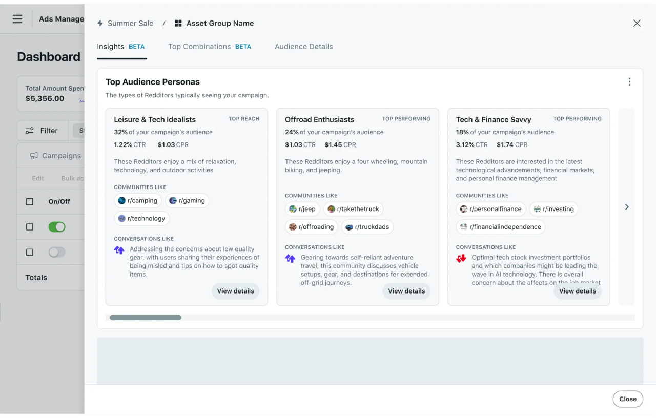 Для начала работы необходимо дать системе МС информацию о своем бюджете и задачах, а также загрузить в нее ранее использованные материалы (страницы, изображения, заголовки). На основе этих данных Reddit сам найдет подходящих для кампании пользователей. Круг потенциальных таргетированных сообществ можно сузить вручную при настройке целевой аудитории. Это первый из множества запланированных аналитических инструментов Reddit, использующих ИИ.