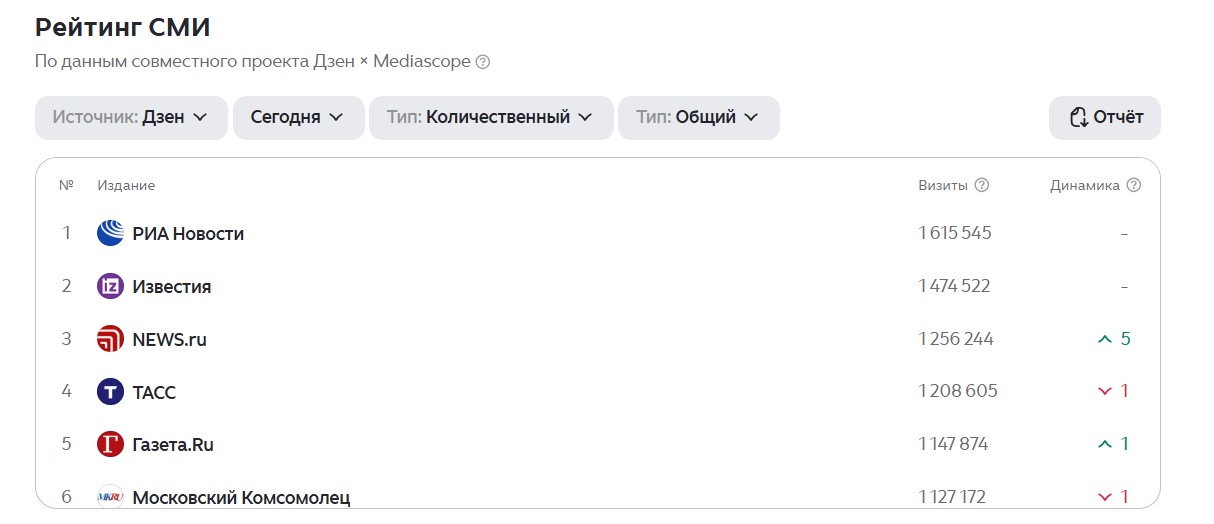 «Дзен» добавил в рейтинг СМИ данные по визитам в реальном времени