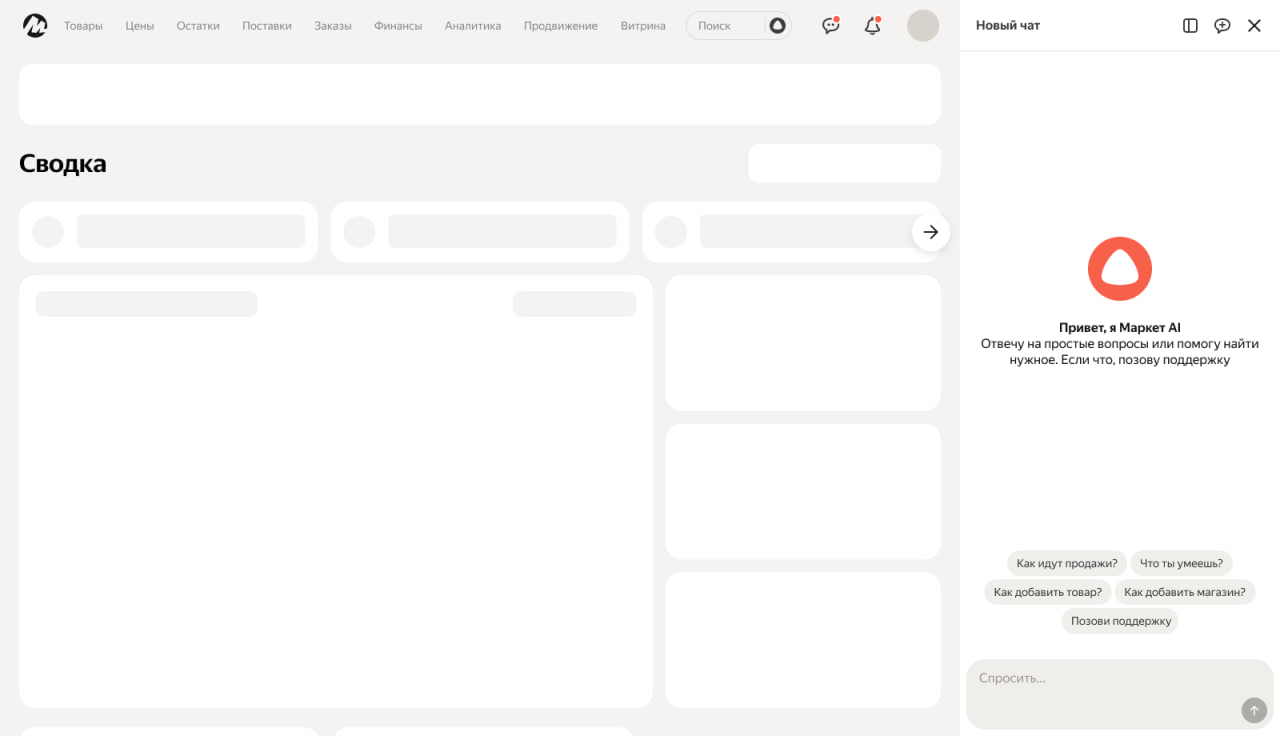 «Яндекс Маркет» добавил ИИ-чат в личный кабинет продавца.