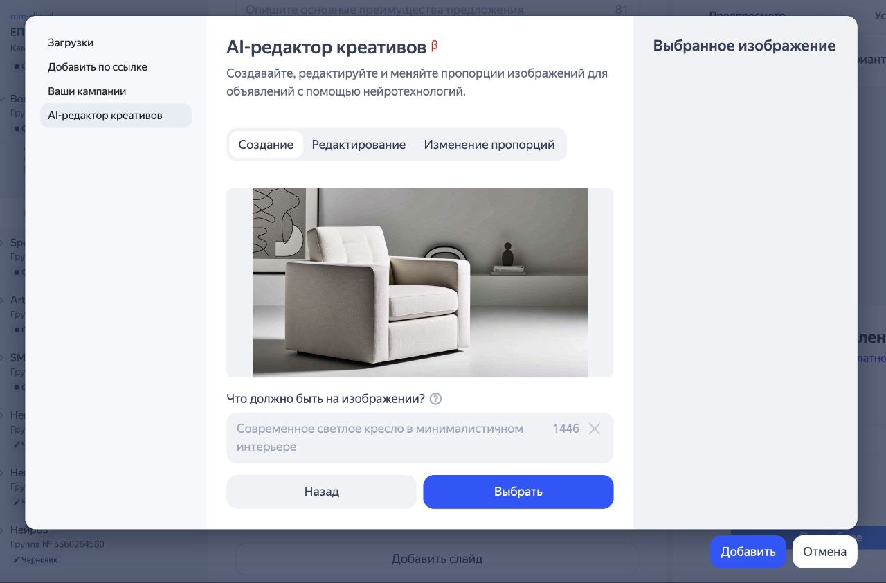 И еще одно обновление от «Яндекса» ― редактор рекламных креативов