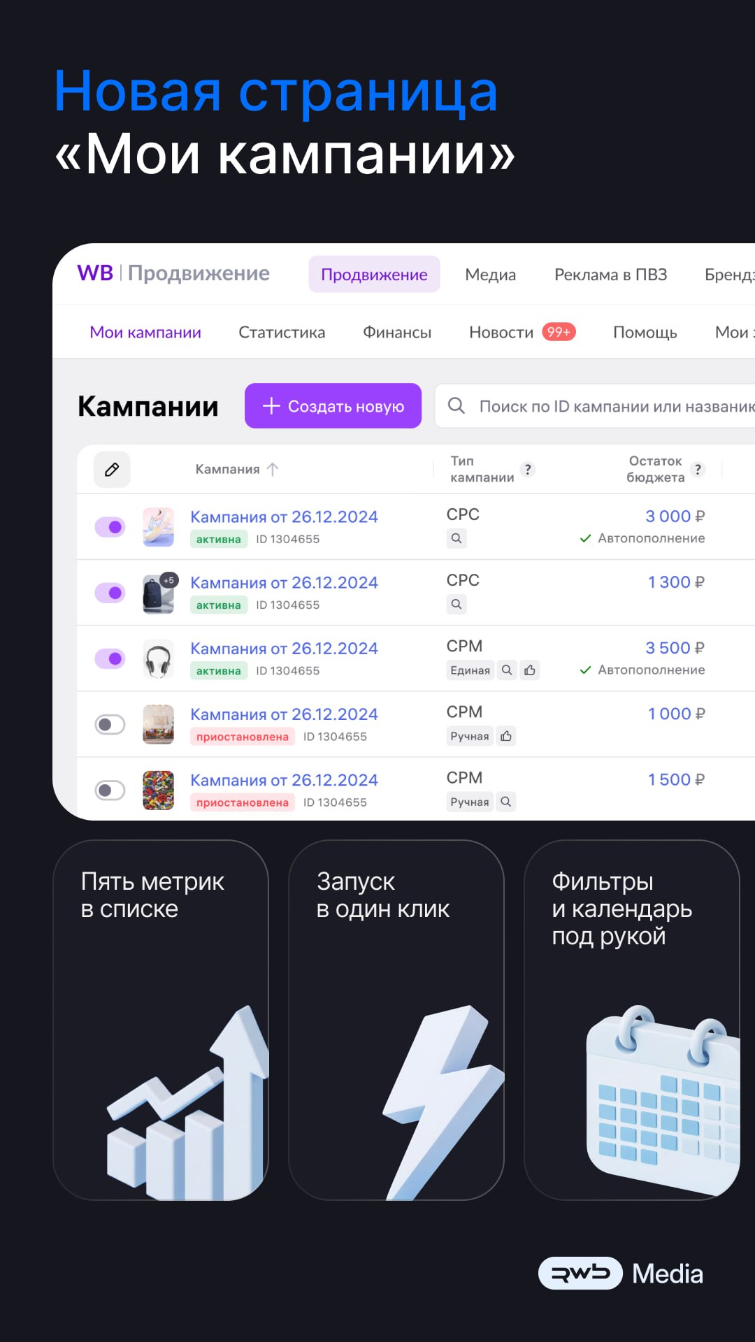 «WB Продвижение» обновило интерфейс «Мои кампании»