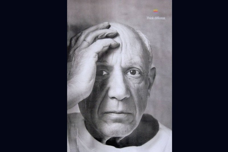 Во время Think Different Apple выпустила серию постеров, с фотографиями задействованных в кампании исторических личностей. Среди тех, кто изображен на них, есть Эйнштейн, Ганди, Али, Грэм, Томас Эдисон, Нил Армстронг.