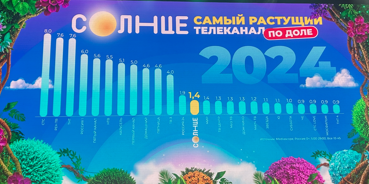 Согласно данным, собранным Mediascope, доля телеканала за год выросла с 1,4 до 1,8 п. п. (подъем на 28%), тем самым «Солнце» догнало «Россию 24», чья доля также составляет 1,8 (в 2024 г. этот показатель был на уровне 1,9). Телеканал приблизился в рейтинге к «ТВ-3» с долей аудитории 3,8.