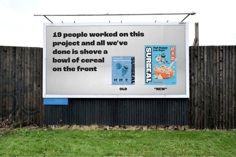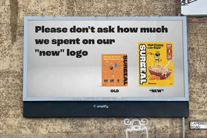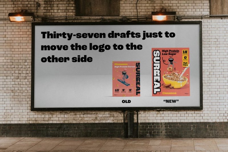Бренд хлопьев Surreal посвятил серию уличных постеров узнаваемому стереотипу о ребрендинге, который в действительности ничего не меняет.