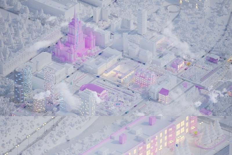 Мы долго искали визуальный язык, на котором этот город мог бы говорить со зрителем. Фотореализм 3D был бы слишком буквальным, схема слишком холодной. Мы остановились на поэзии стилизованного объема, на игре света и тени, где узнаваемость очертаний важнее деталей, но цвета и декоративные элементы сохранили свою узнаваемость и эталонность. Было создано более двадцати 3D-моделей, которые воссоздают контент CTC Love. Этот город — не карта, а настроение.