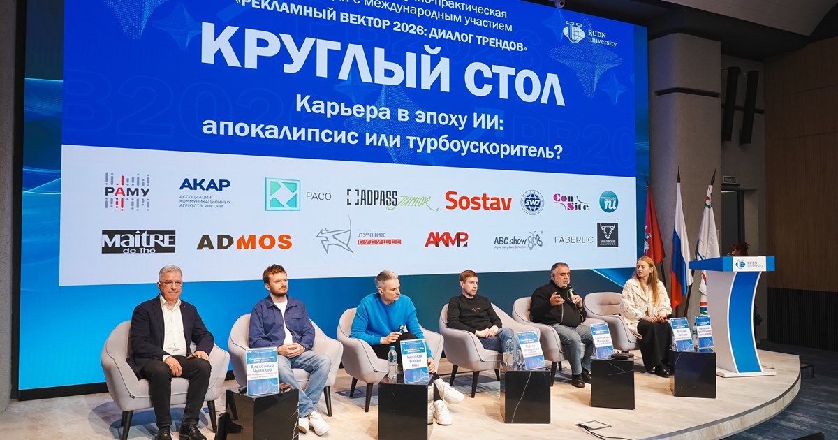 В рамках XX Всероссийской научно-практической конференции «Рекламный вектор — 2026: диалог трендов» в РУДН им. Патриса Лумумбы прошла дискуссия о перспективах карьерного роста в эпоху искусственного интеллекта