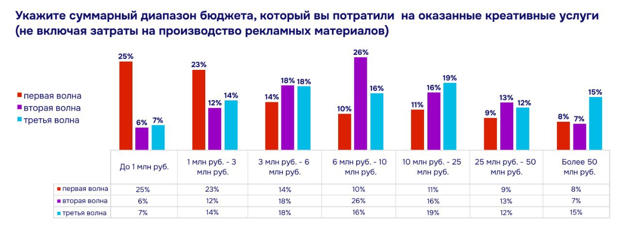 Почти половина участников опроса (46%) заплатили за креативы более 10 млн