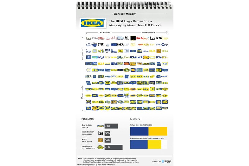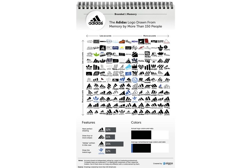 Участников попросили нарисовать по памяти логотипы 10 крупных брендов. Затем их изображения оценивали, насколько они близки к оригиналу:
