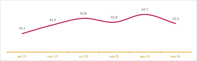 · в январе 2026 года (61,6 п, -2,1 п. к декабрю 2025 года) потребители чаще стали ожидать подвох, скрытые условия, чувствовали навязывание и давление к покупке.
