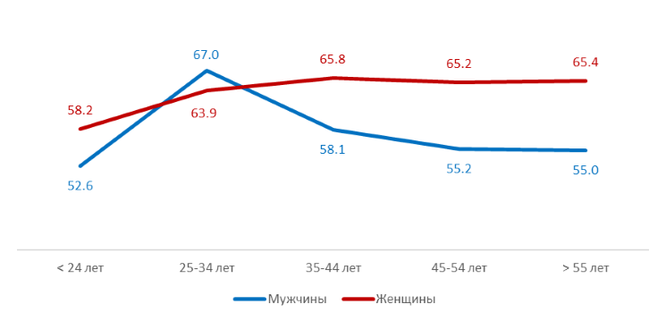 · среди мужчин доверие к рекламе резко снижается с возрастом и ростом уровня образования, чем у женщин.