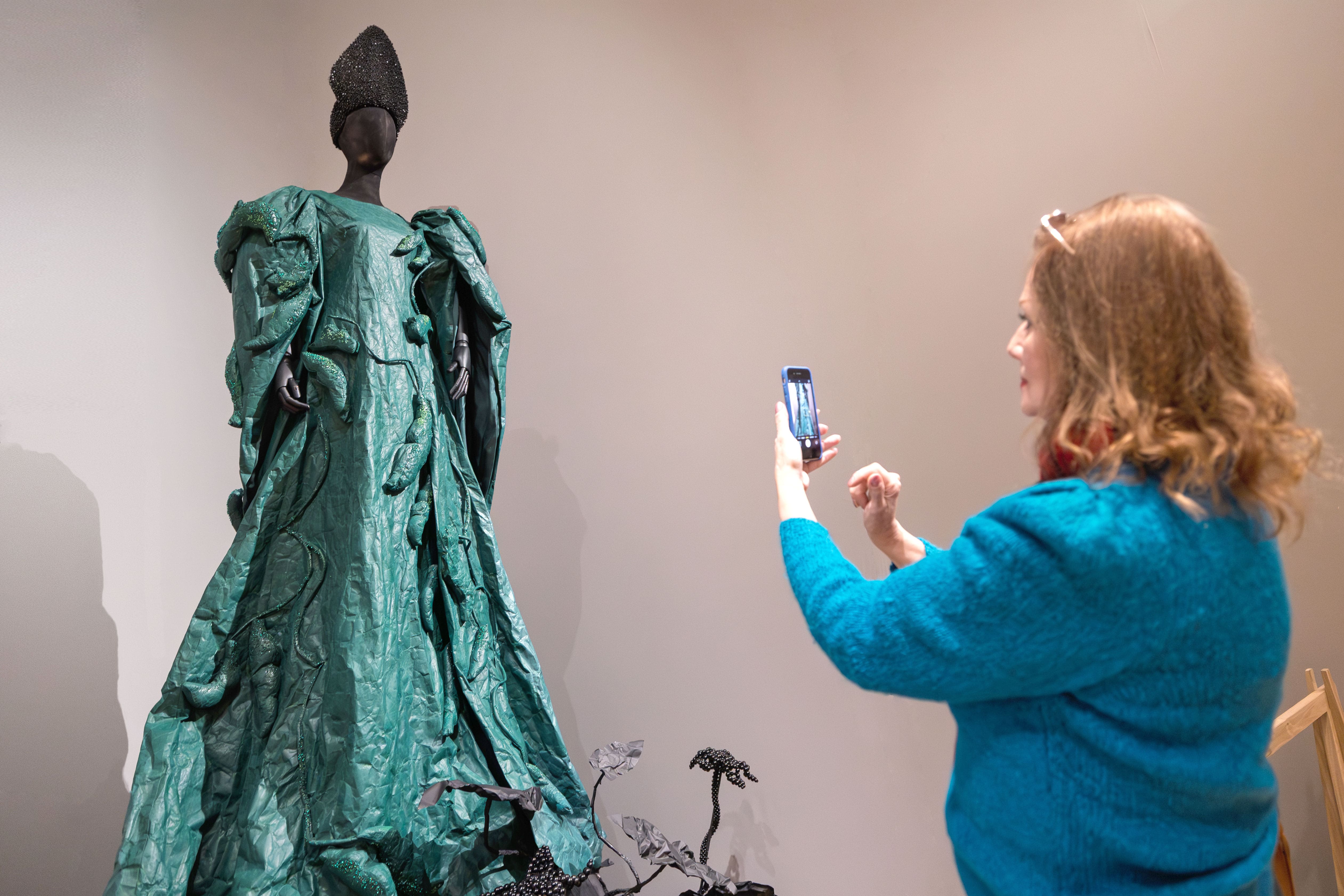 Авторов композиции вдохновили национальные художественные традиции и природные мотивы. Платье назвали «Волшебный лес», оно напоминает народные костюмы. Швы сделаны только в биоморфной эстетике — без прямых линий. Они должны напоминать о растениях, их плавных изгибах. Также на платье появились 3D-листья. Всего было потрачено 12 метров ткани из переработанного пластика. Мастерицы делали наряд 120 часов.