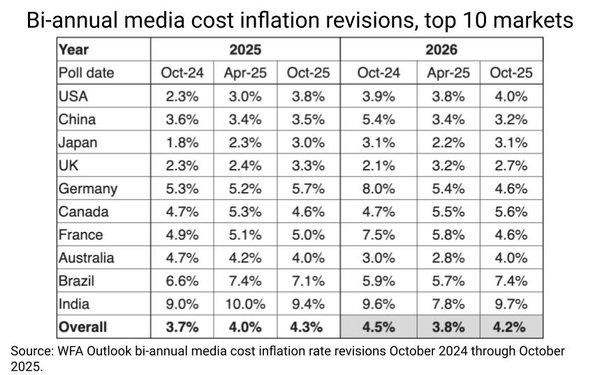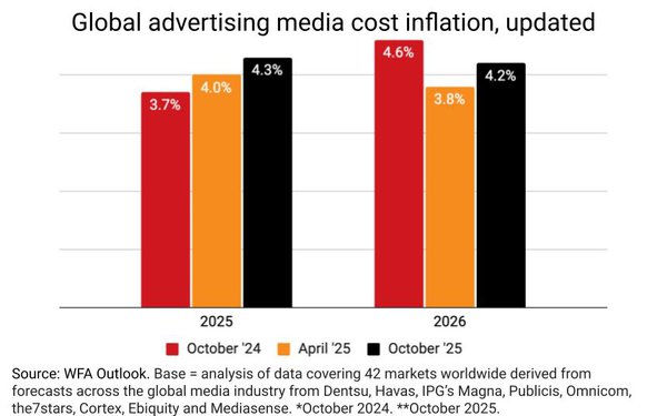 «Глобальный тренд на уровне 4% сигнализирует о том, что мировой медиарынок вошел в новую норму — умеренную, но постоянную инфляцию, отражающую более широкие экономические процессы», ― цитирует издание выводы аналитиков.