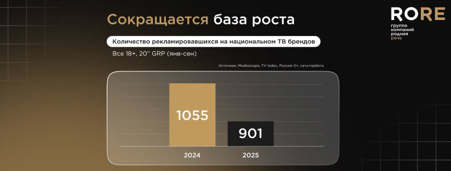Число рекламодателей на ТВ сократилось на 154 бренда за год