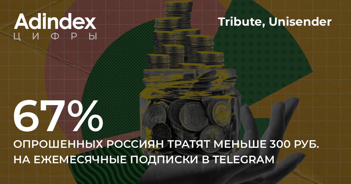 Свыше половины россиян (67%) рассказали, что предпочитают ежемесячные подписки в «Телеграме» дешевле 300 руб. Об этом говорится в результатах исследования Tribute и Unisender.