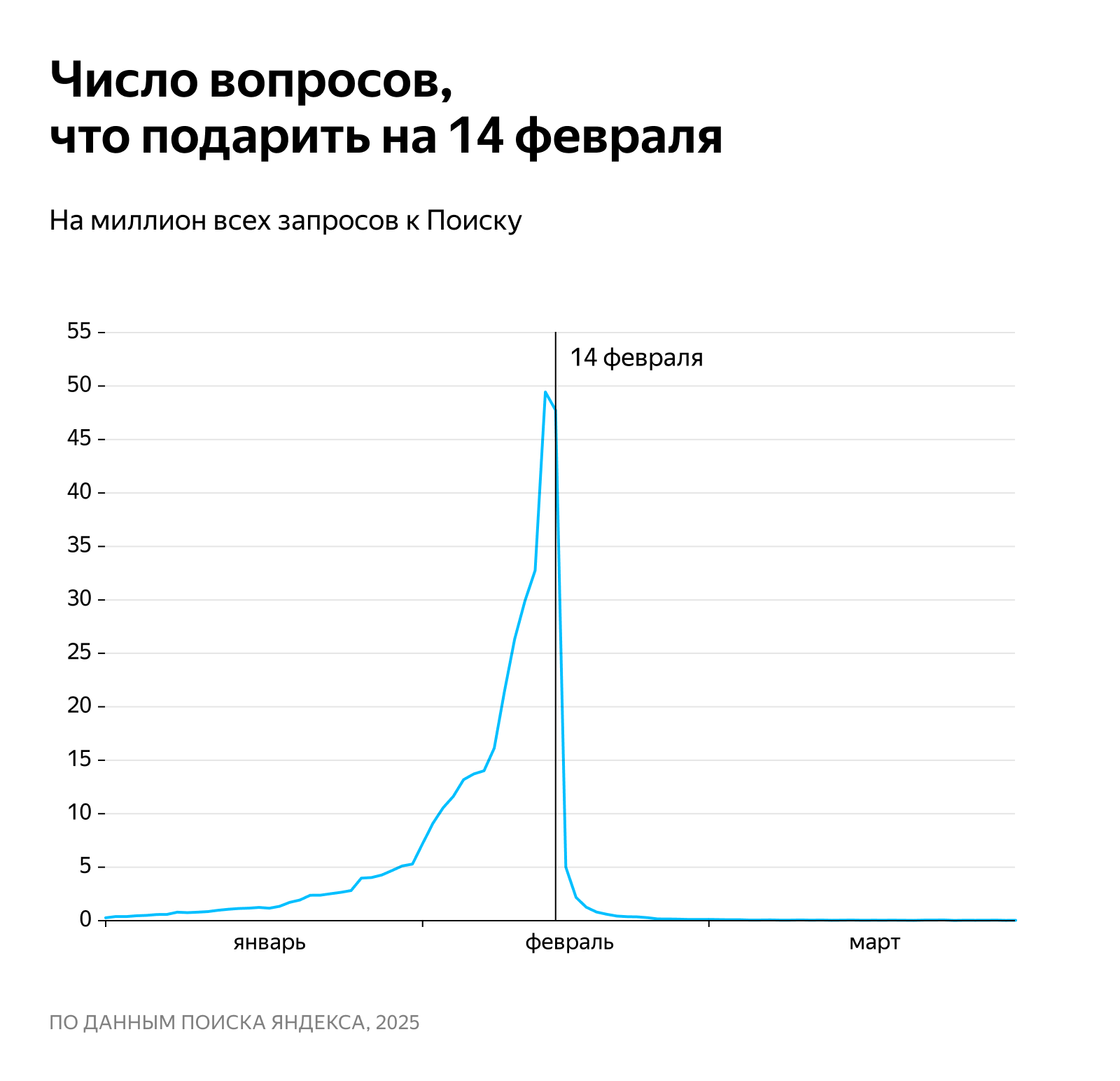 Россияне начинают готовиться ко Дню всех влюбленных задолго до праздника — пик поисковой активности приходится на последнюю неделю перед 14 февраля, согласно исследованию «Поиска Яндекса» и голосового помощника «Алисы». При этом мужчины и женщины подходят к выбору подарков по-разному.