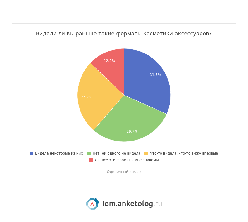 Необычные форматы (помады-брелоки, чехлы со встроенной косметикой) пока остаются нишевым трендом. Хорошо знакомы с ними только 13% опрошенных, 30% никогда не видели таких продуктов. Лучше всего о них осведомлены девушки 18–25 лет (42%), среди женщин старше 55 лет — только 3%.