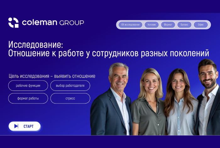 Как четыре ключевых поколения выбирают работодателя, какой график предпочитают, от чего испытывают стресс и чего ждут — в исследовании Coleman Group