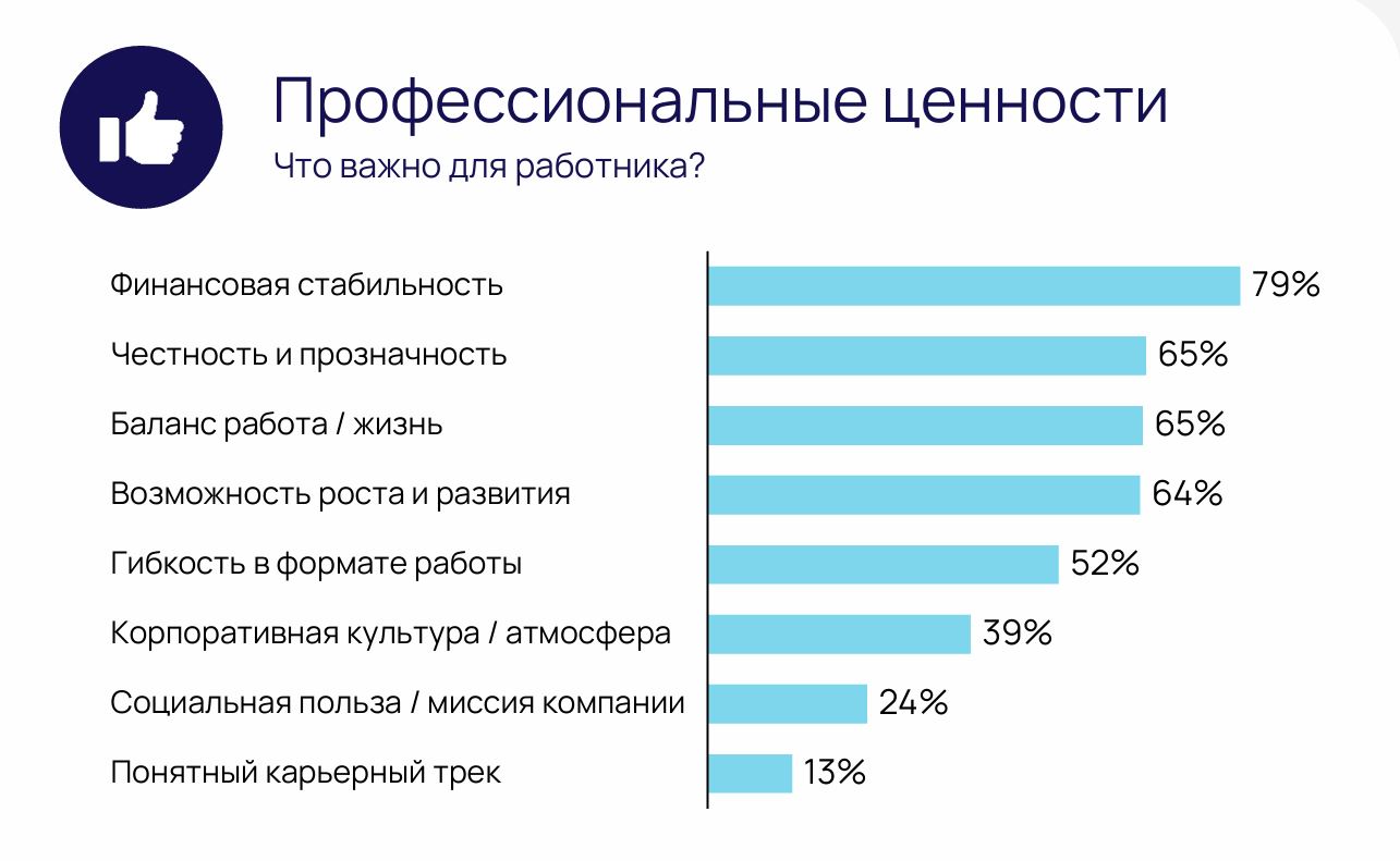 Рисунок 1. Ключевые профессиональные ценности для соискателей