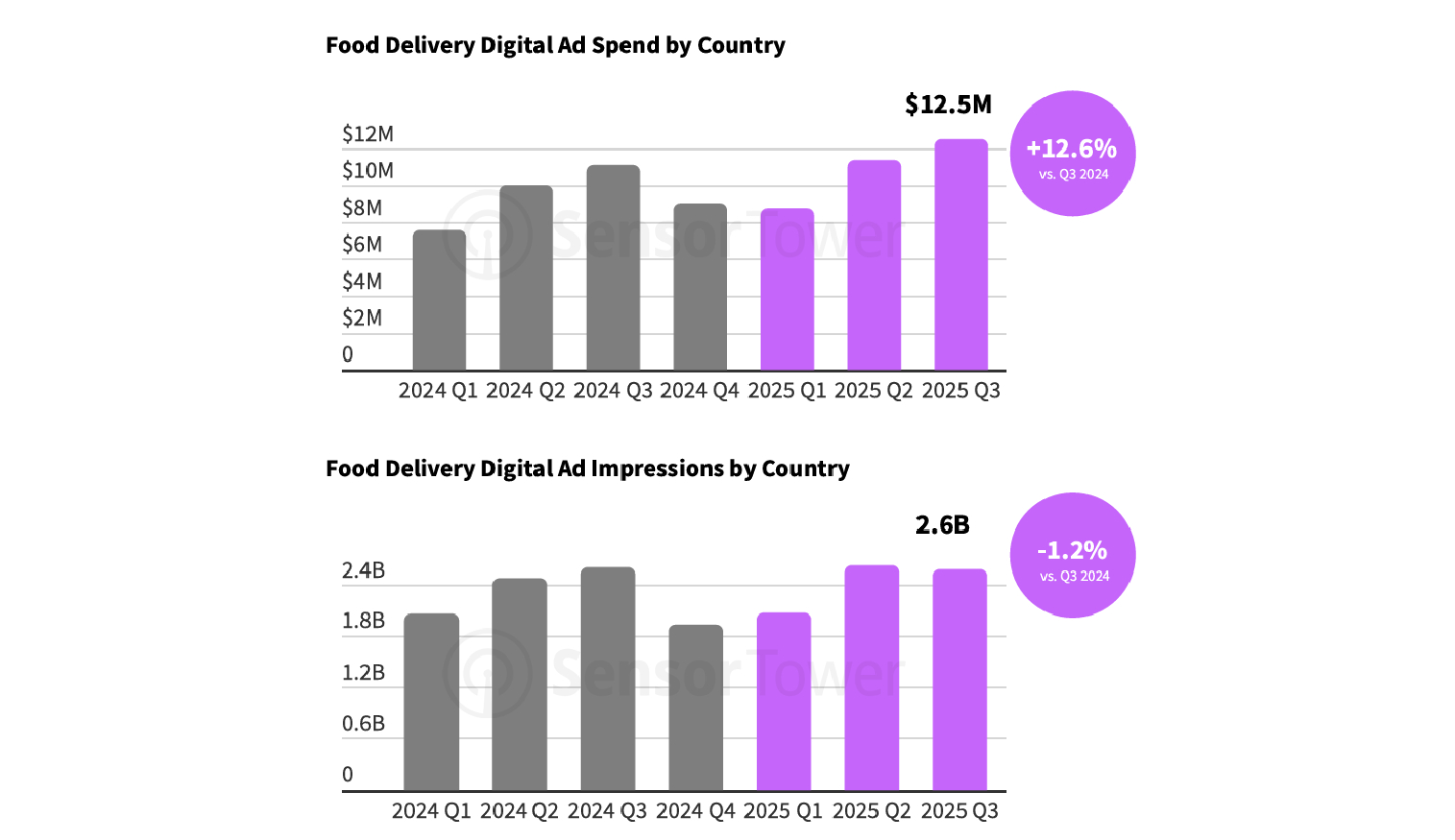 Вместе с этим меняется и рекламная активность брендов. В США рекламные расходы в секторе доставки еды показали рост на 28% год к году в третьем квартале 2025 г. Рекламодатели в Канаде, Германии, Испании и Великобритании также будут наращивать расходы в четвертом квартале. Бренды доставки еды перераспределяют свои бюджеты на видеорекламу, уходя с социальных видеоплатформ в сторону стримингового ТВ. При этом в Штатах соцсетям все равно уделяется порядка 50% бюджетов.
