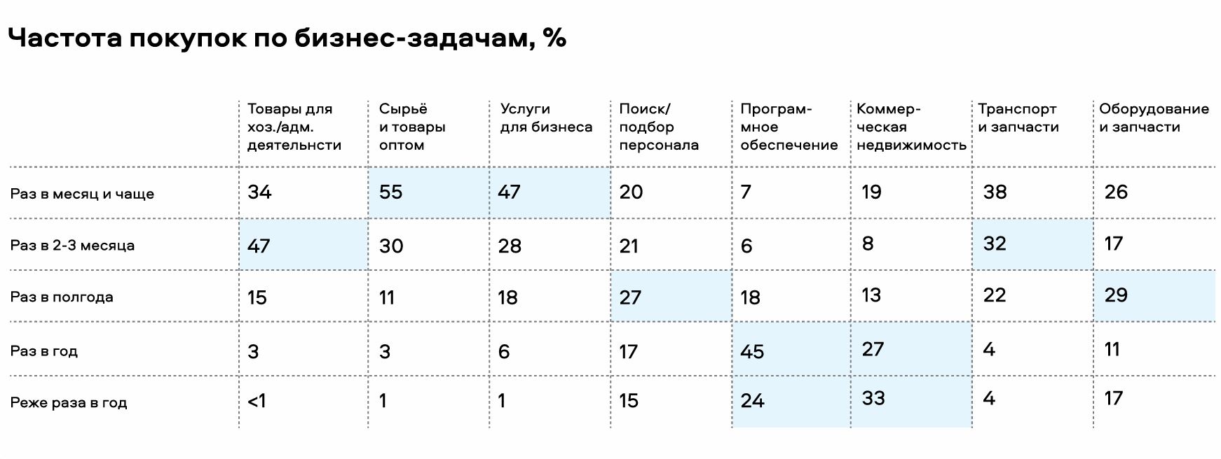 Рисунок 2. Частота покупок в зависимости от целей бизнеса