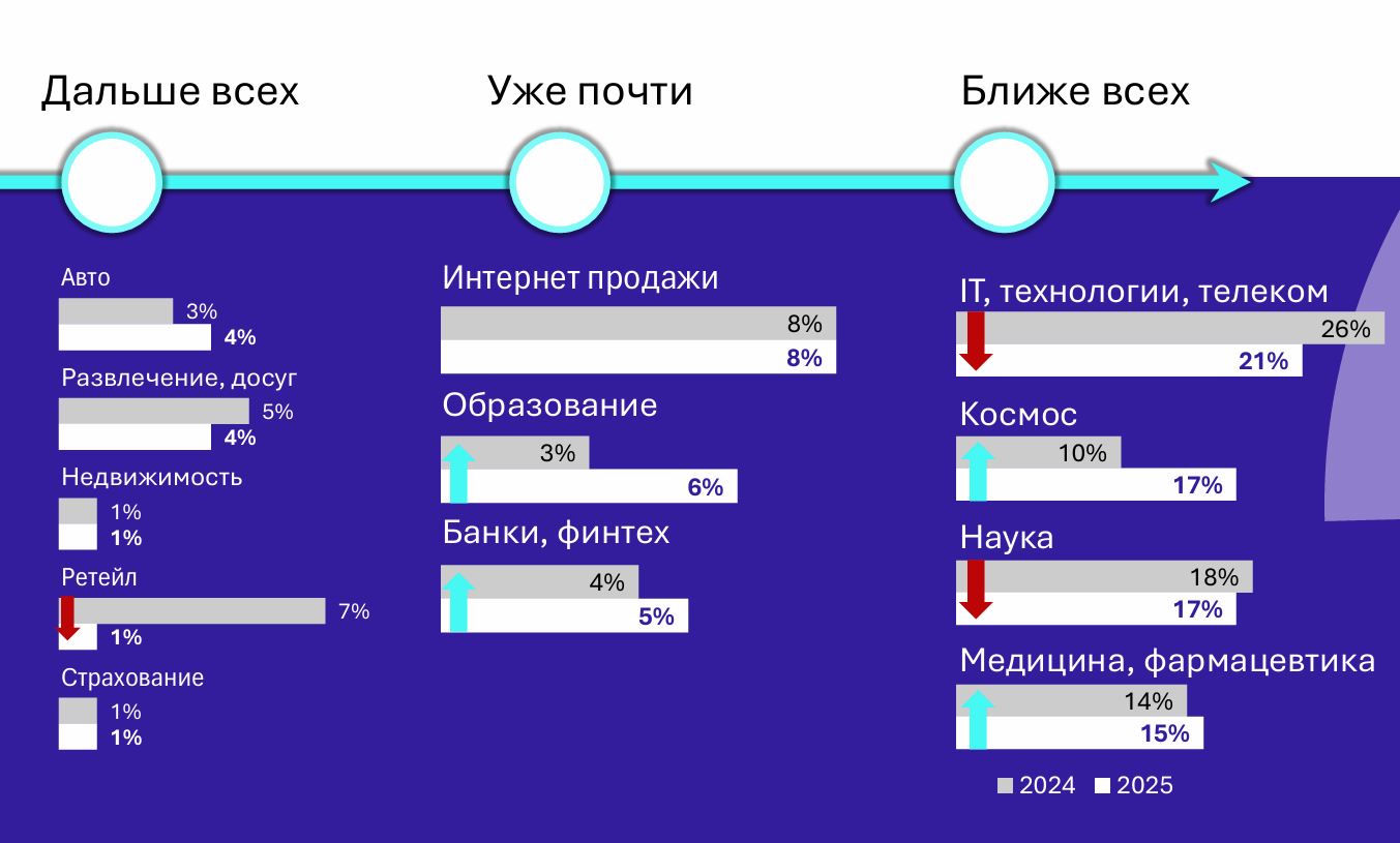 Рисунок 2. Близость различных отраслей к определению будущего в глазах