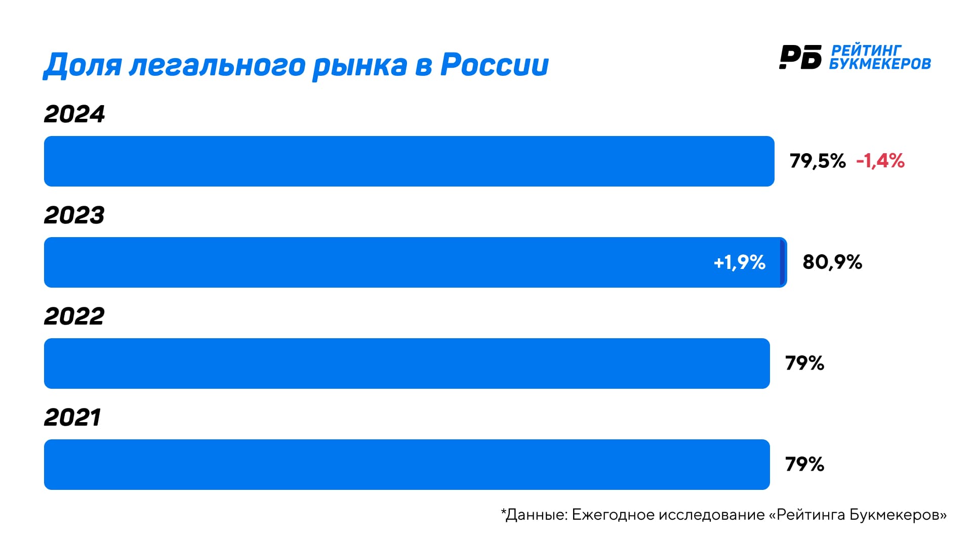 Удивительный факт: вот уже на протяжении четырех лет доля легального рынка в России остается на одном и том же уровне — около 80%.