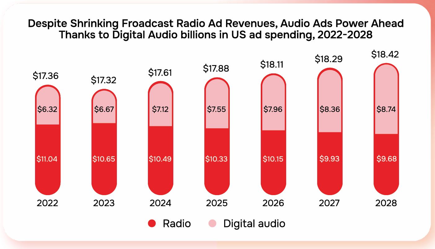 Рисунок 2. Расходы на радио- и цифровую аудиорекламу в США