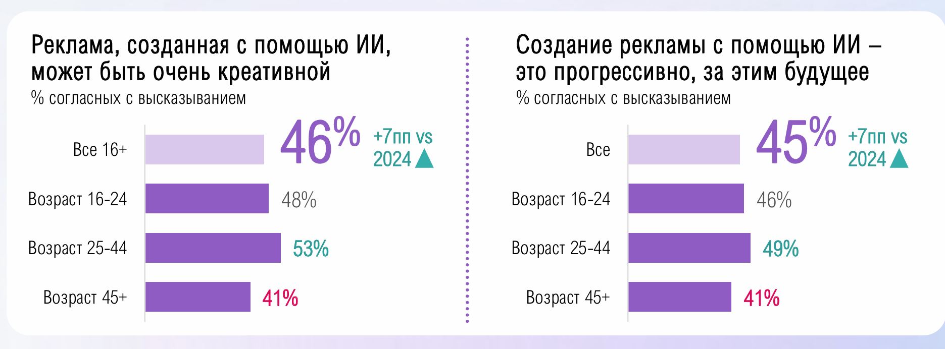 Потребители устали от навязчивой рекламы. Сегодня выигрывают бренды, которые делают коммуникации «теплыми» — легкими, эмоционально экологичными и вовлекающими через интерактив и геймификацию (45% опрошенных любят интерактивную рекламу).