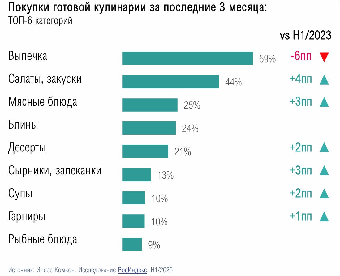 Рисунок 1. Доля покупок разных категорий готовой еды среди