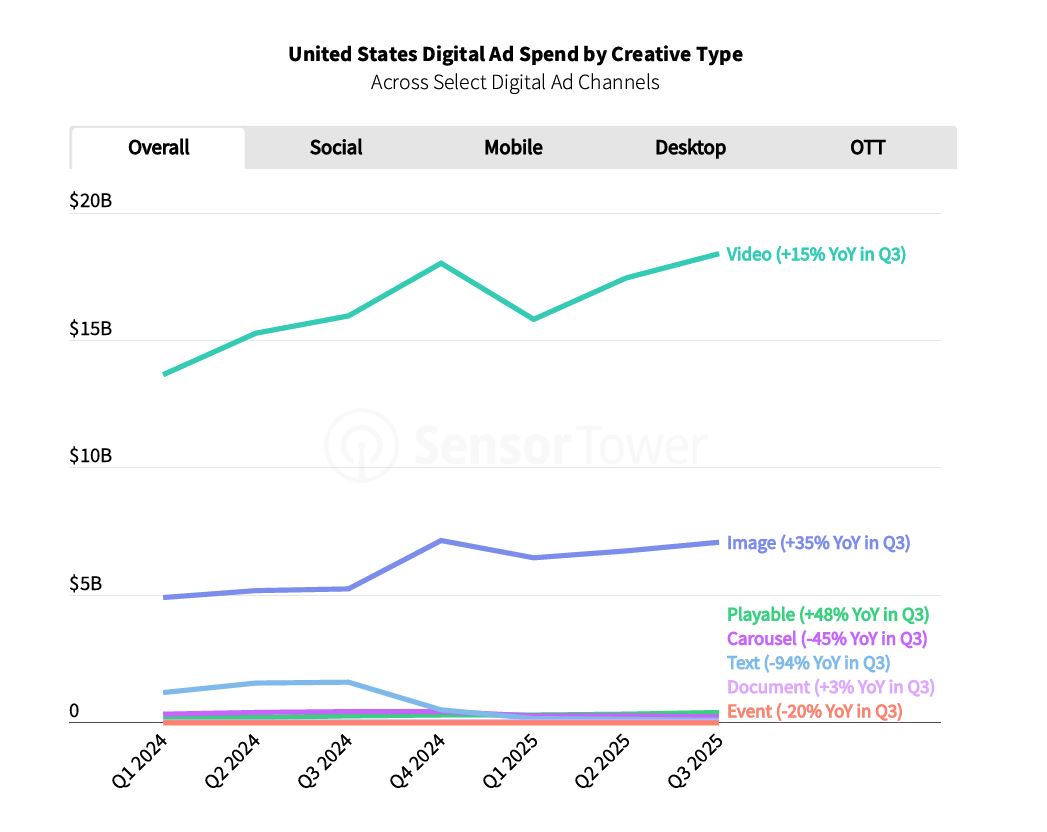 Рекламодатели будут перераспределять бюджеты в пользу статичных креативов. После многолетнего доминирования видео ожидается, что расходы на рекламу с изображениями будут расти быстрее (35% год к году), чем на видеорекламу (15% год к году).