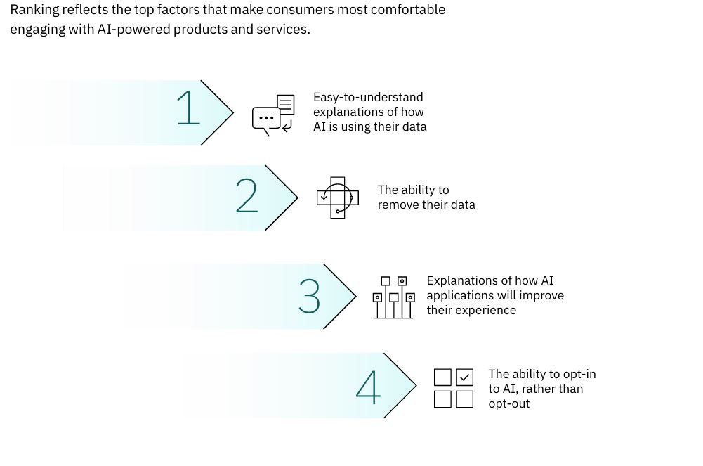 Потребители хотят больше прозрачности в области использования нейросетей. Так, 89% потребителей хотят знать, когда взаимодействуют с ИИ, а две трети (67%) готовы сменить бренд, если компания намеренно скроет использование искусственного интеллекта. Почти все (95%) руководители заявляют, что именно доверие потребителей к ИИ будет определять успех новых продуктов и услуг.