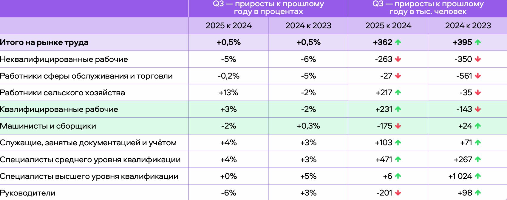 Рисунок 1. Динамика специалистов на рынке труда в третьем квартале 2025