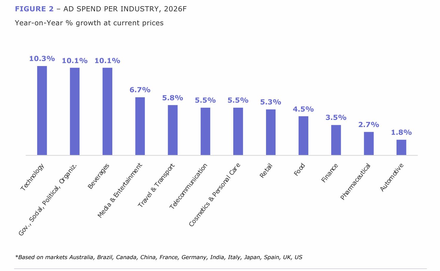 Глобальные расходы на рекламу в 2026 г. вырастут на 5,1%.