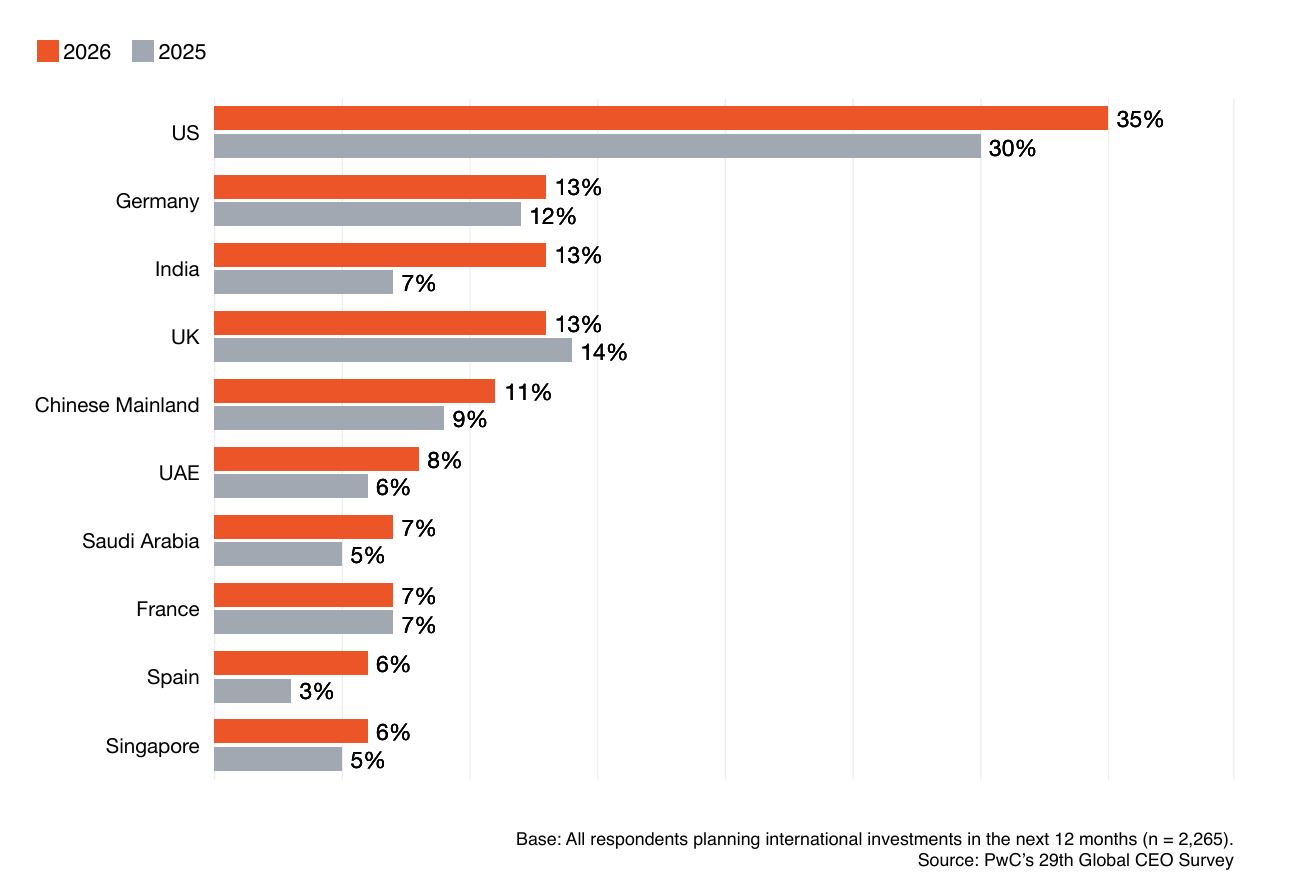 Рисунок 1. Наиболее популярные страны для зарубежных инвестиций