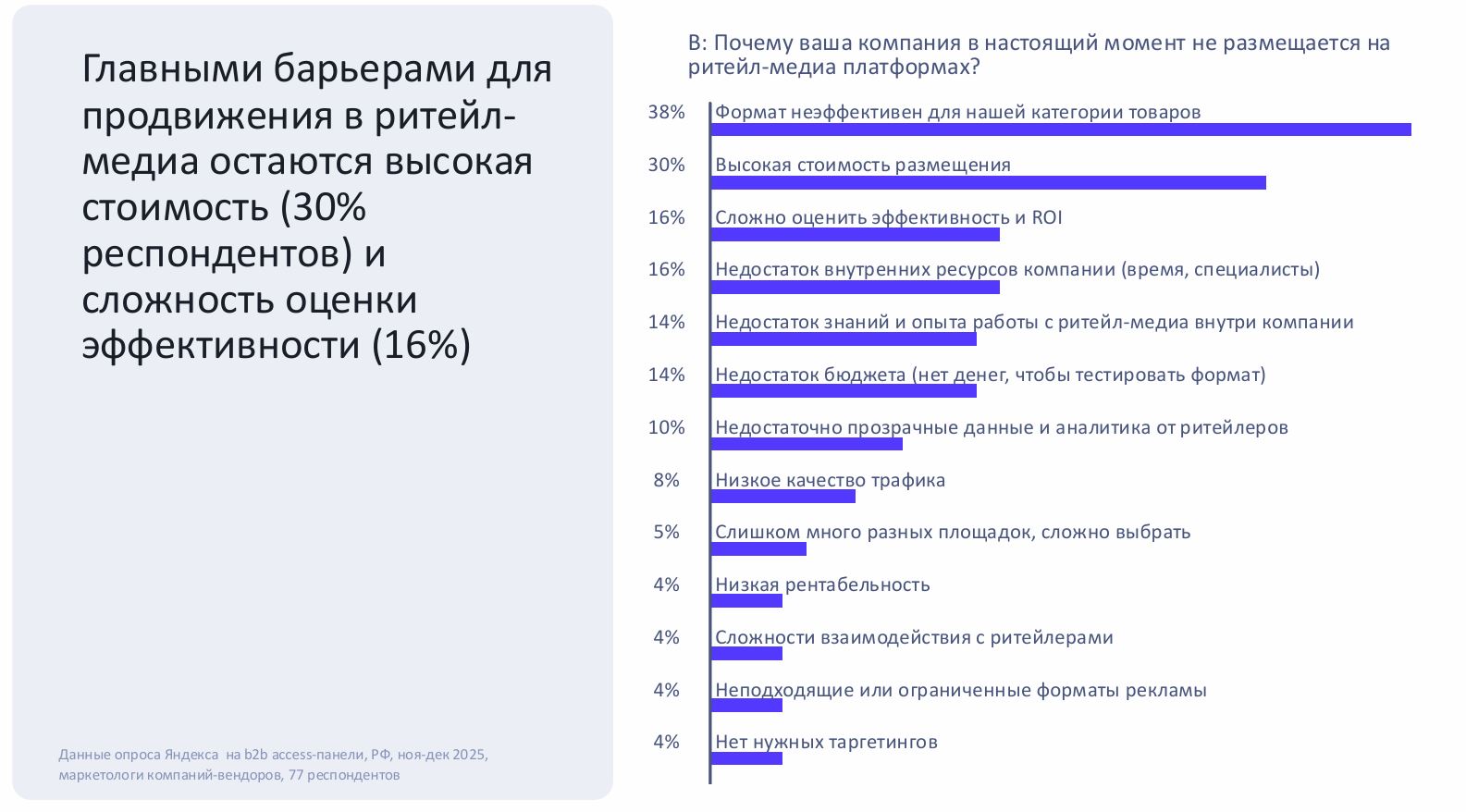 Рисунок 1. Главные барьеры при использовании ретейл-медиа