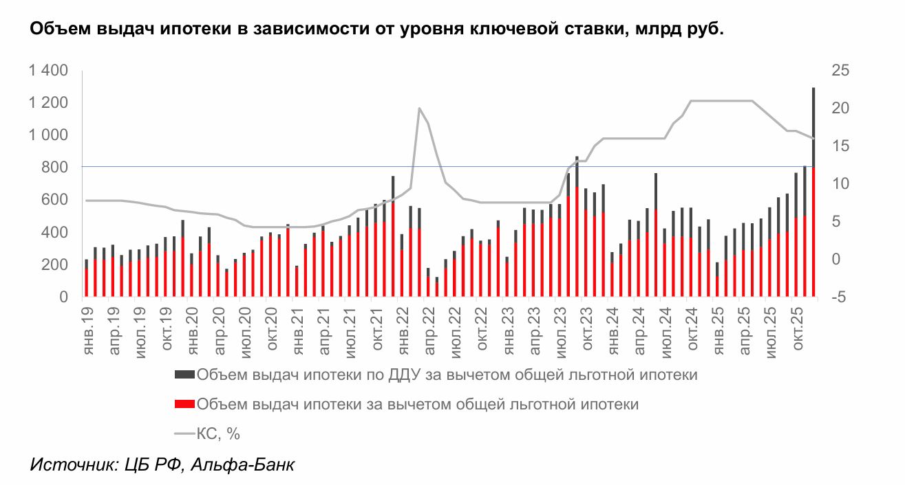 Объем выдач ипотеки прогнозируется на уровне 4,6–4,8 трлн руб. Основной драйвер — льготные программы (доля «Семейной» ипотеки — 90% среди них), но их условия ужесточатся.
