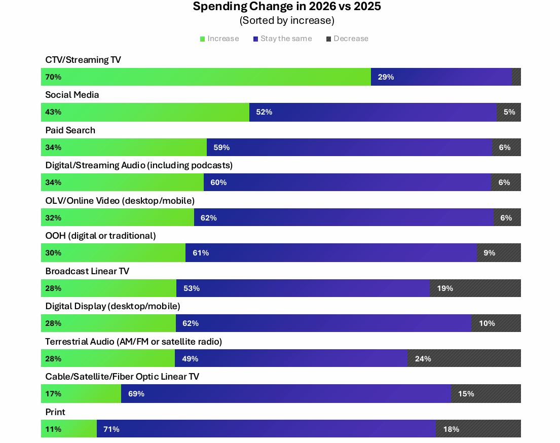 CTV забирает бюджеты: 70% брендов планируют повысить расходы на канал в 2026 году
