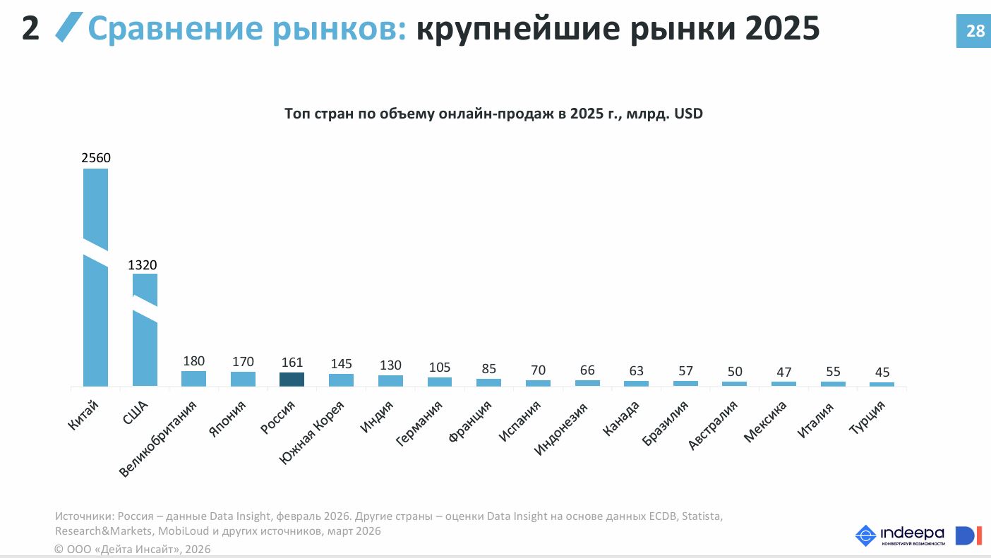 Рисунок 1. Сравнение стран по объему онлайн-продаж