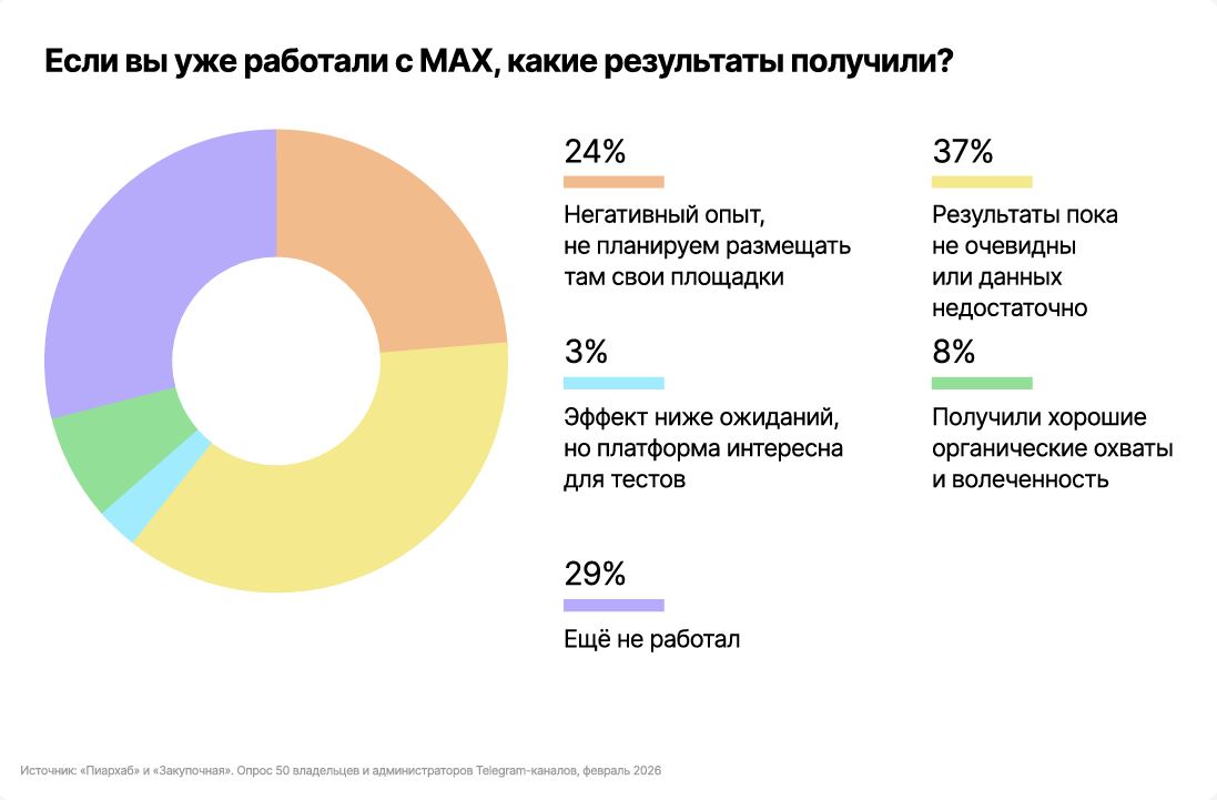 При этом правовая напряженность вокруг мессенджера нарастает. Большинство участников индустрии считают, что блокировка и серьезные ограничения работы неизбежны. Каждый пятый респондент нанял юриста в штат. Больше трети опрошенных считают юридические риски и вопросы маркировки одной из главных сложностей при работе с нативными форматами.