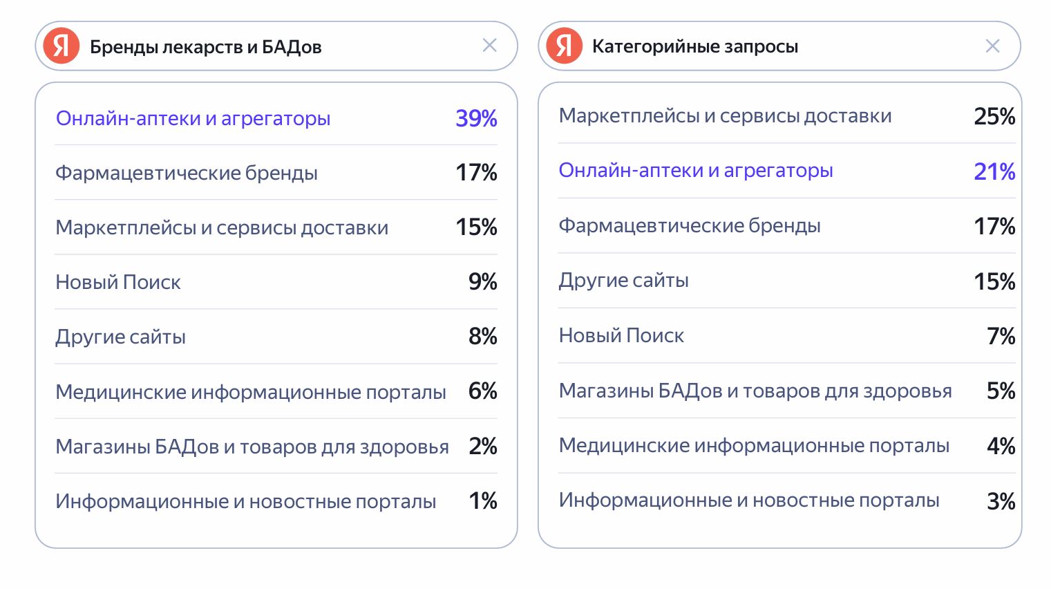 Поиск — один из главных источников информации перед покупкой. Треть опрошенных россиян перед покупкой препарата проверяет информацию в поиске. По данным «Нильсен», 60% россиян самостоятельно ищут сведения про лекарства в интернете.