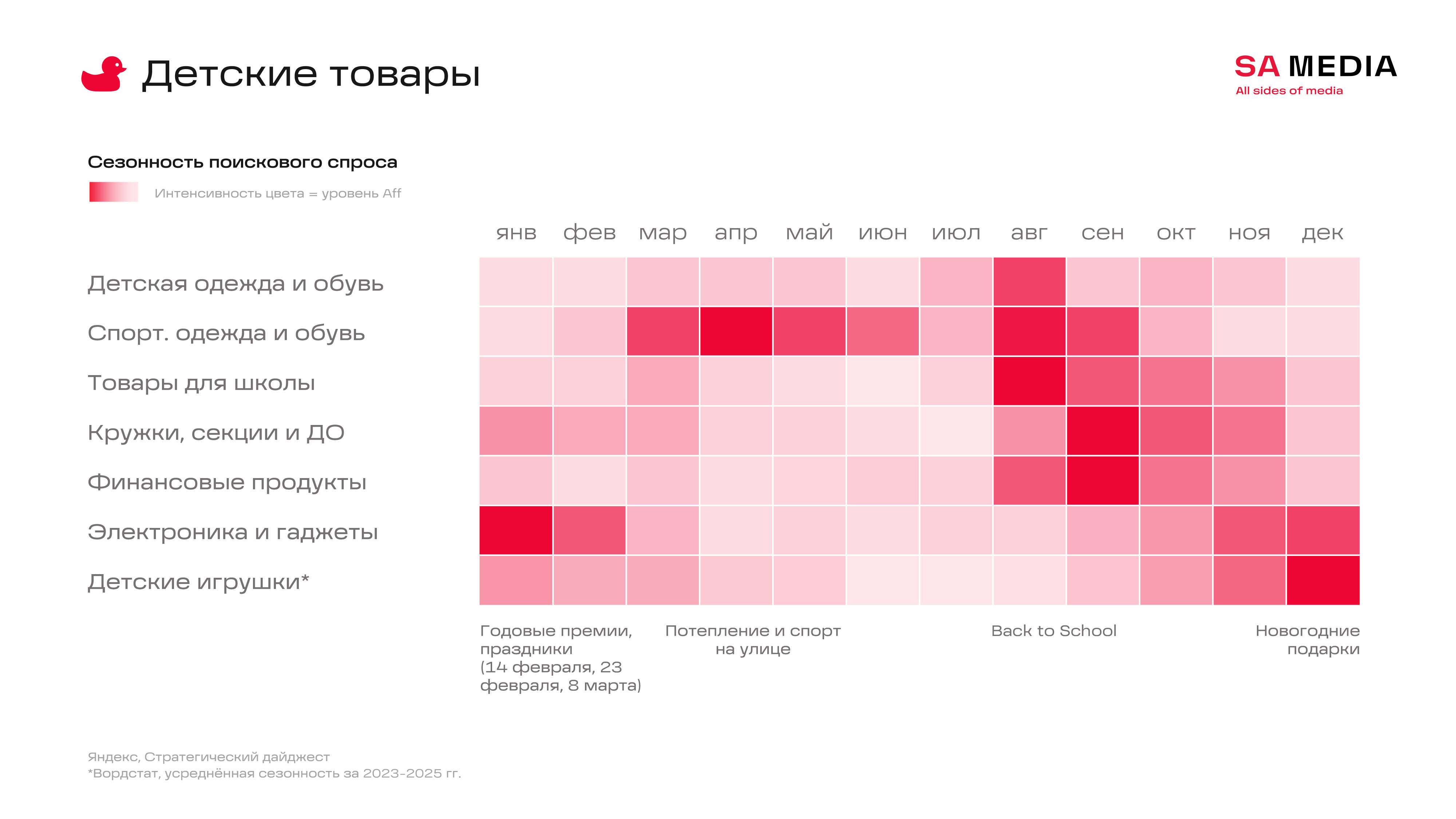 Стратегическая логика: спрос диктуется не только календарем, но и жизненными циклами семьи (начало учебного года, запись в кружки, подготовка к лету).
