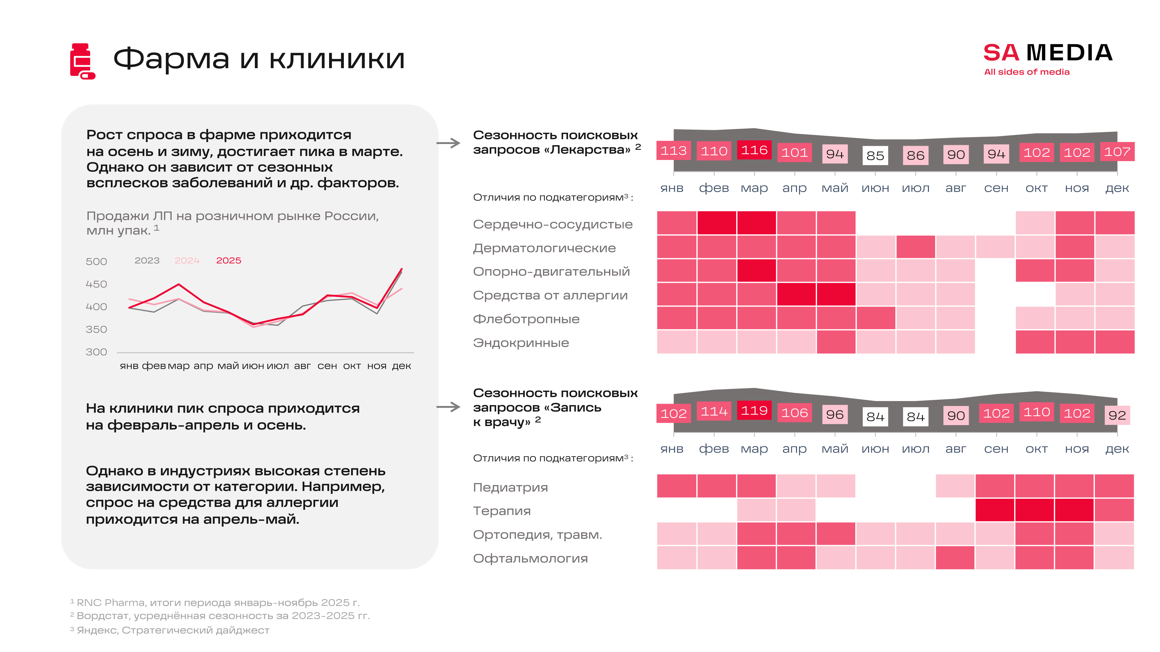 - Особенность: спрос часто опережает фармацевтический тренд — люди начинают покупать БАДы до наступления сезона заболеваний.