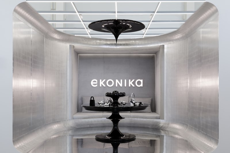 Бренд обуви Ekonika показал инсталляцию «Through the Looking Glass of Shoemaking», разработанную совместно с архитектурным бюро. Пространство оформлено как шахматное поле, где каждая клетка символизировала этап создания обуви. Посетители проходили маршрут от ремесла к искусству, наблюдая, как ручная работа и дизайн становятся метафорой творчества. Проект подчеркнул идею: в современном мире крафт — это тоже форма искусства.