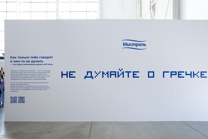 Бренд круп «Мистраль» представил арт-проект «Гречка как искусство», созданный в сотрудничестве с современными художниками. Инсталляции из стекла, света и зерна формировали медитативное пространство, где простые материалы превращались в метафору созидания. Посетители могли собрать собственную композицию из круп, напоминая себе, что повседневное тоже может быть вдохновляющим.