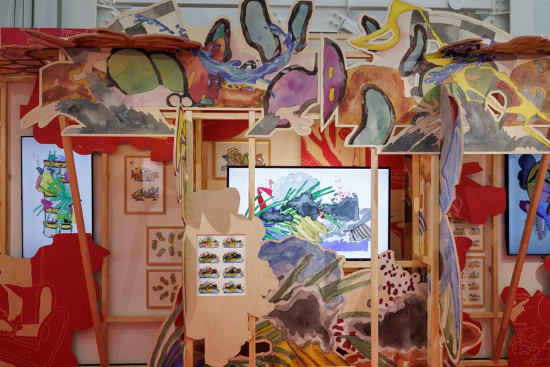 После ярмарки Chupa Chups создал кураторскую подборку на платформе ТЕО, а инсталляция переехала в Товарищество Рябовской мануфактуры, где останется до конца января 2026.