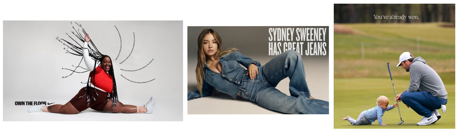 Яркий пример — изменение в подходе Nike. Всего пять лет назад бренд делал однозначную ставку на разнообразие, заполняя свои каталоги моделями всех размеров. Однако кампания 2025 года говорит на другом языке: она сосредоточена на образе отца и сына, которые играют в гольф. Это не просто смена декораций, а смена нарратива: с публичного на личное, с социального на семейное.