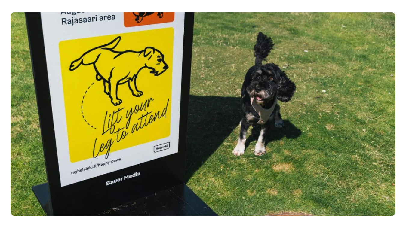 В столице Финляндии решили усилить городской бренд, создав экскурсии для собак: по городу разместили билборды на уровне глаз четвероногих, которые пахнут так, чтобы привлекать их внимание. А еще сделали аналоги городских достопримечательностей. Например, памятник композитору Яну Сибелиусу в масштабе один к четырем создан из палок, собранных местной собакой-спасателем.