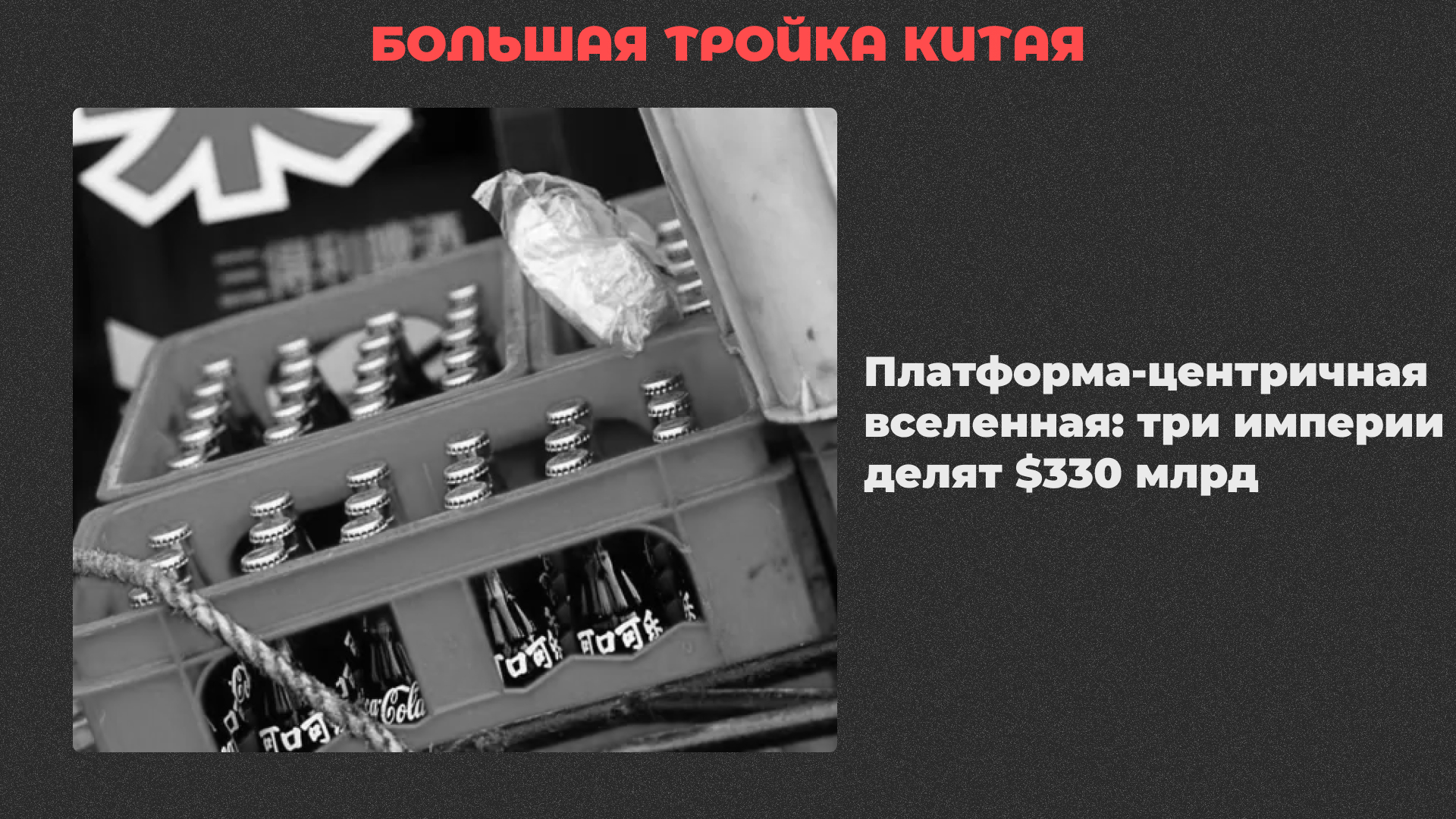 Если западный диджитал — это пестрая мозаика из Facebook*, Google, Amazon, TikTok, Snap и сотен других игроков, то Китай — это три суперплатформы, которые контролируют почти весь рынок: Alibaba, Tencent и ByteDance.