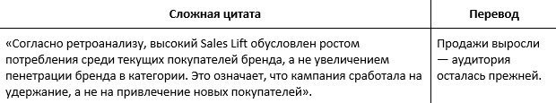 Читайте и запоминайте. Теперь, когда вам скажут: «Кампания сработала на удержание, а не на пенетрацию», — вы будете точно знать, что продажи выросли за счет текущих покупателей, а новые так и не пришли.